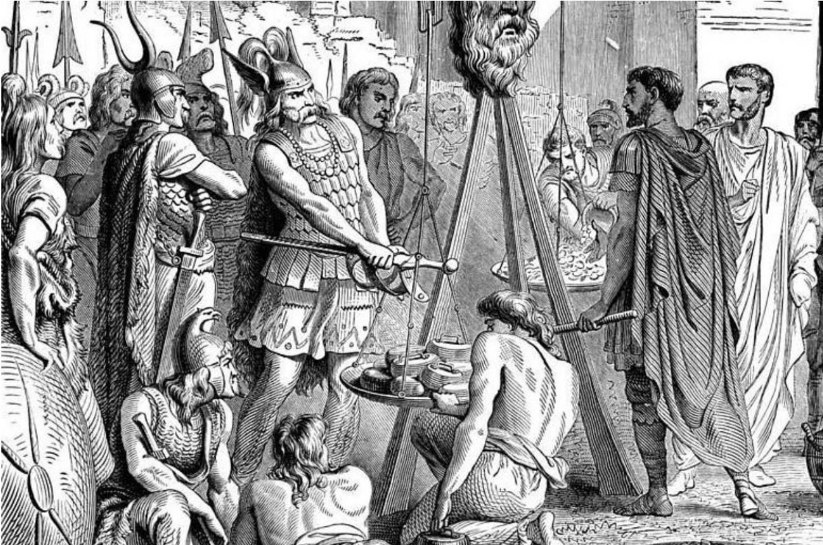 When the Gauls sacked Rome in 390 BCE it was something of a shock to the Romans [2]. The victorious Gauls subsequently levied 1000 pounds of reparations from their conquered hosts. This was long before the EU standardisation of weights and measures and predictably differences arose at settlement. An upstart Roman failed to read the atrium and thought now would be a good time to air his opinions of the Gallic scales. The Gallic chieftain Brennus briefly weighed the merits of this argument before throwing his heavy sword on the non-gold side of the scales declaring in Latin ‘Vae Victis’ – Woe to the Vanquished. A less than subtle reminder of that timeless maxim that to the victor go the spoils.