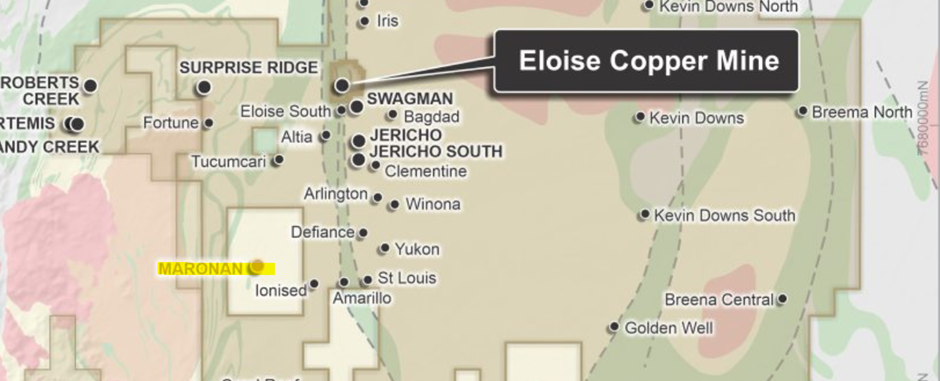 When you look at their Eloise Copper Mine and surrounding deposits you'll see Maronan Metals sole project (aptly named Maronan Project) sitting on its lonesome surrounded by AIC prospects.