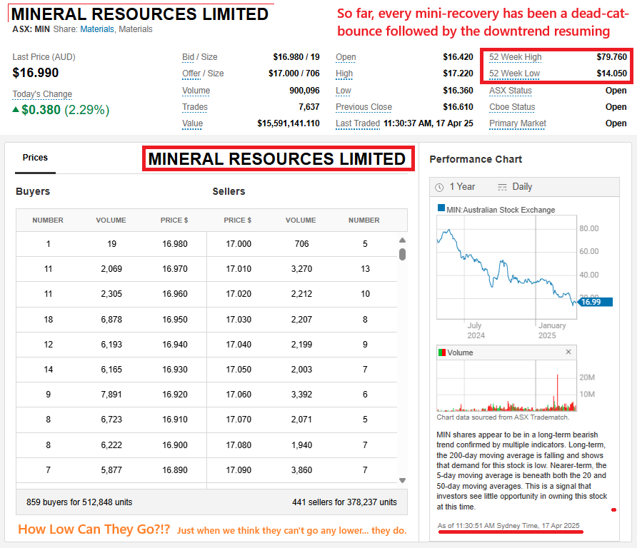 28th May 2025: MinRes (MIN) released the following two announcements at 6:15pm and 6:27pm last night, so the market got to react to the production downgrade today. MIN closed down -5.47% at $22.45 today.