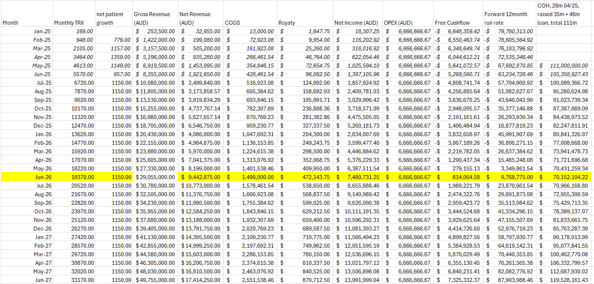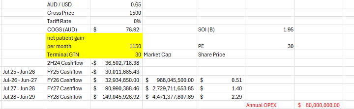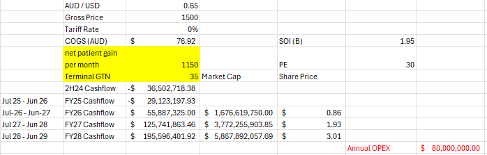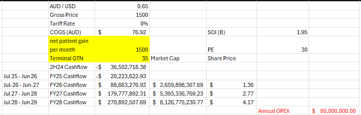 Previous posts I was thinking that 1000 / month would be a good base with increased sales force / prescriber productivity etc but missed this by 40% and also the GTN is in the shocker.