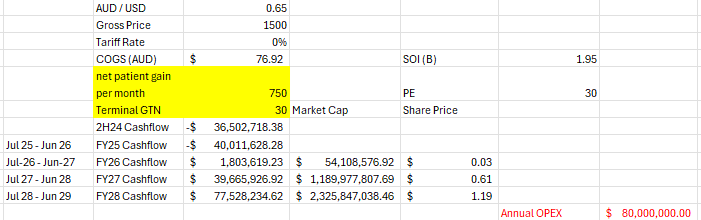 I guess there is a chance the new reps get some growth firing but that net patient gain I have deduced from the numbers provided is ugly to me as is the GTN. my theory about the GTN and PA units must have been incorrect.