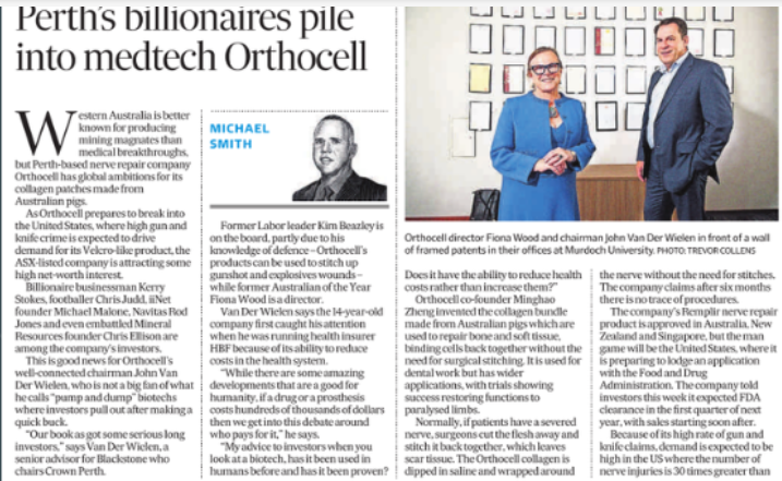 "In a major step forward for treating victims of paralysis, Australian regenerative medicine company Orthocell has won regulatory approval" (Paywall for article)