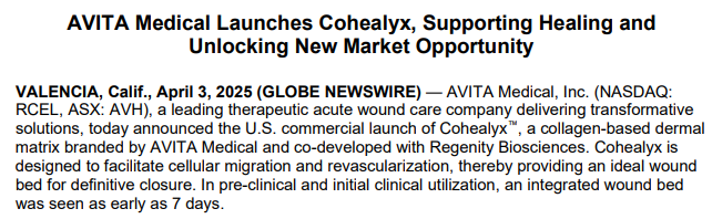 Basically, $AVH announced that from October 1, 2025 to September 30, 2026, U.S. hospitals will be eligible for New Technology Add-on Payment (NTAP) reimbursement of up to $4,875 per case when using RECELL to treat acute, non-burn trauma and surgical full-thickness wounds. The NTAP, granted under CMS’s alternative pathway for FDA Breakthrough Devices, highlights RECELL’s clinical value and innovation.