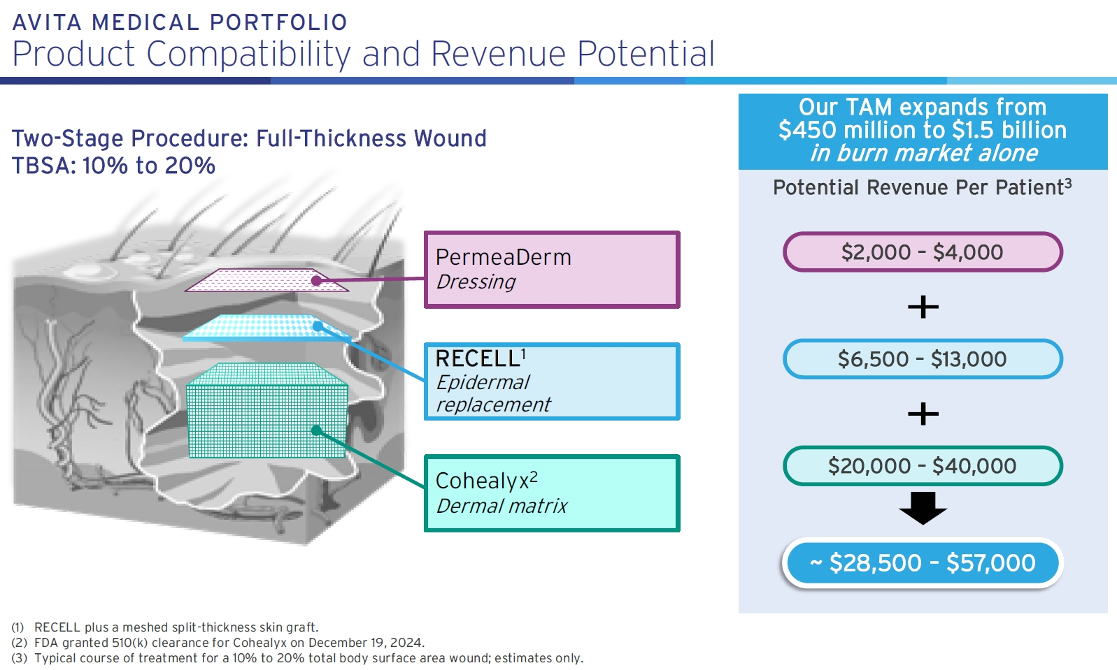 With the focused (i.e. small) clinical studies for Cohealyx (# days better than competing dermal matrices) and Permaderm (cost vs. allograft standard of care) and the recent British Burns Association study on 6300 patient for the -36% less time in hospital for ReCell (to drive burns market penetration up from 20-30% to much higher), the sales reps are going to be armed with compelling data to convert accounts across all levels of burns and trauma acute care. $AVH really could pull off a very potent "one stop shop".