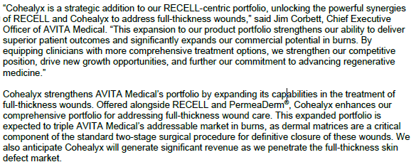 Authorized for release by the Chief Financial Officer of AVITA Medical Limited.