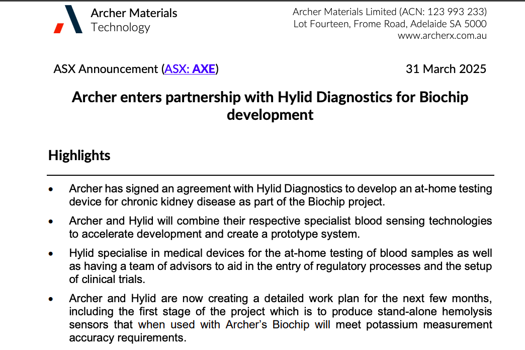 “Archer is continuing to develop the Biochip with a focus on the testing of chronic kidney disease of the Biochip, continued advancement with the 12CQ quantum project, and the launch of a new technology vertical in quantum-based TMR sensors.