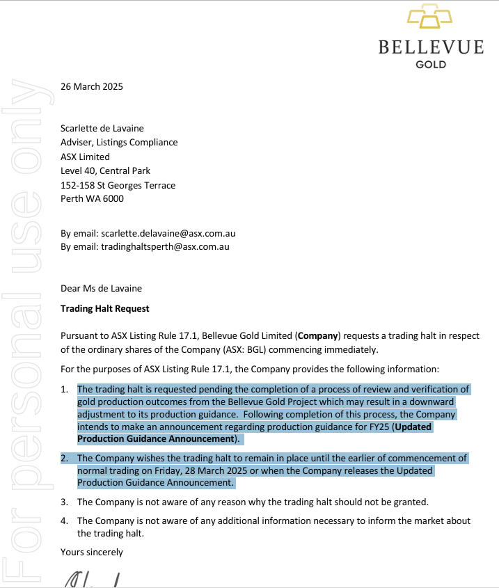 Four days ago, on 03-Sep-2021, BGL released an announcement titled, "Bellevue Gold fully funded into production" - see here: https://wcsecure.weblink.com.au/pdf/BGL/02417370.pdf