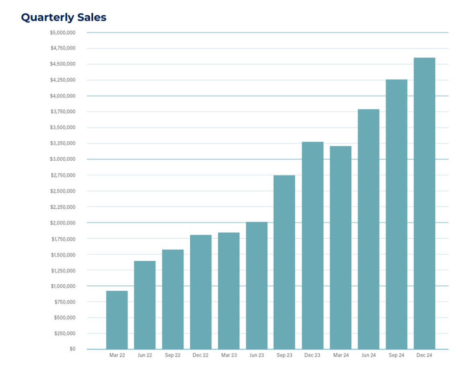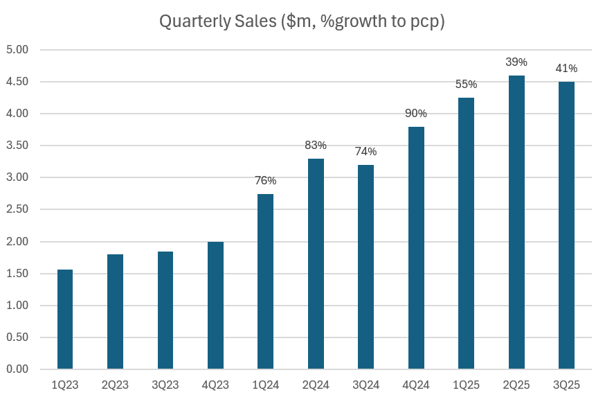 ● Biome achieves another high growth quarter in sales revenue, reaching ~$4.51m for Q3, an increase of 41% vs PCP