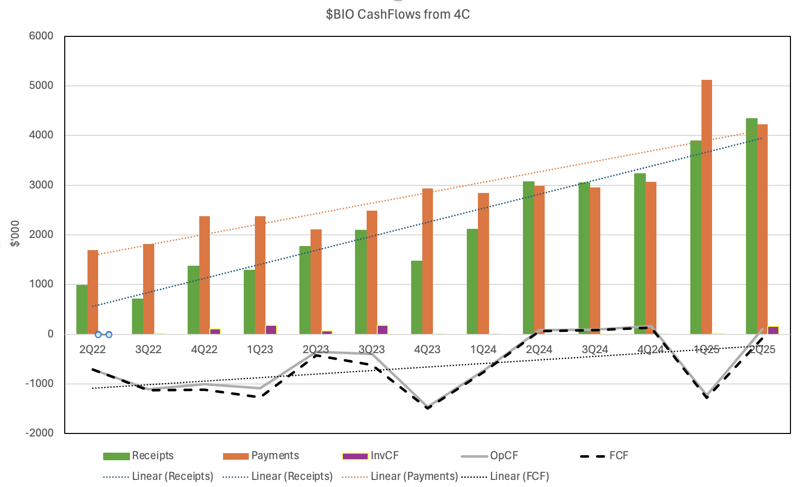 Figure 1: $BIO Cashflows from 4C (“as reported”)