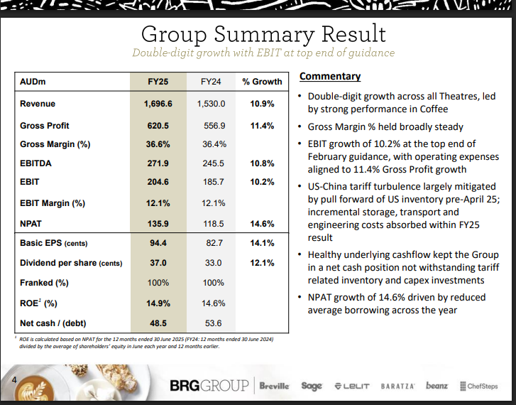 • EBIT growth of 10.2% at the top end of February guidance, with operating expenses aligned to 11.4% Gross Profit growth