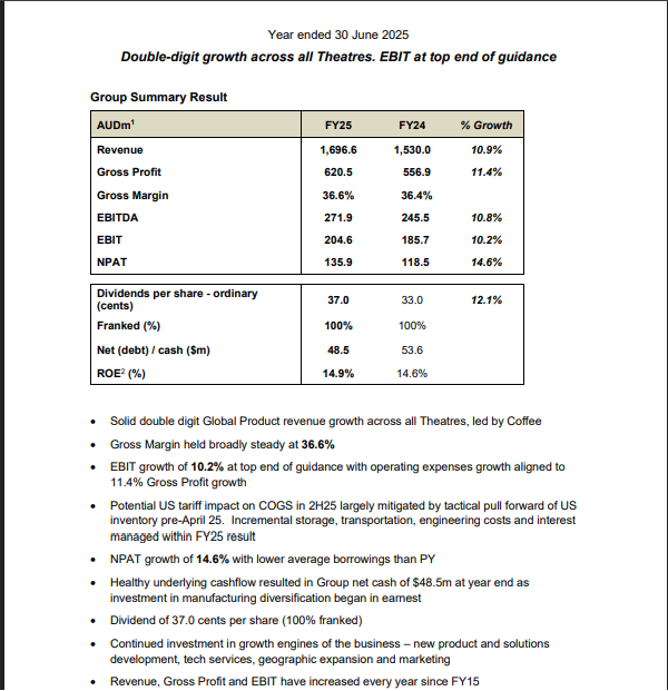 Double-digit growth across all Theatres, led by strong performance in Coffee