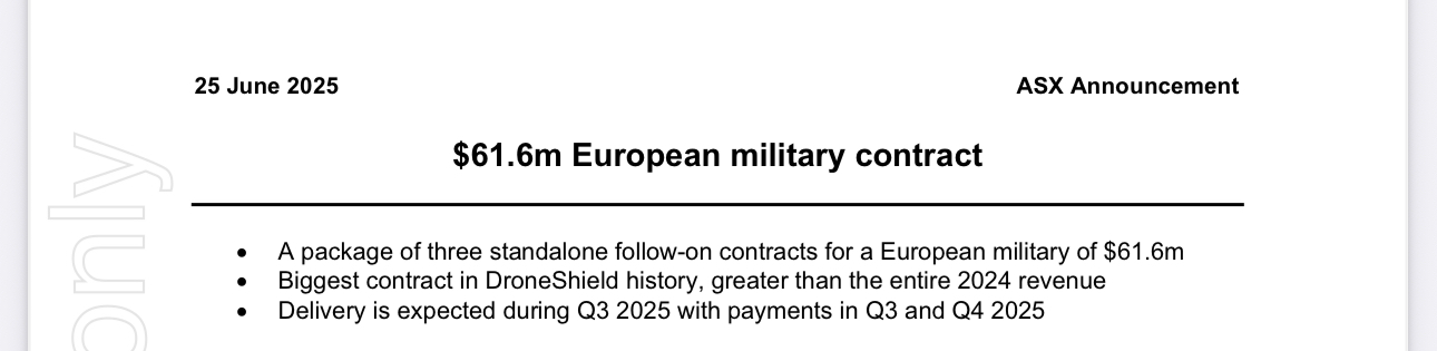 I think Droneshield have a lot of momentum @Noddy74 and the recent Drone bomb attack in Iran could provide even more opportunities.