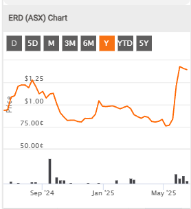 ERD shares have come out of the trading halt after the board meeting, and the board has knocked it back.