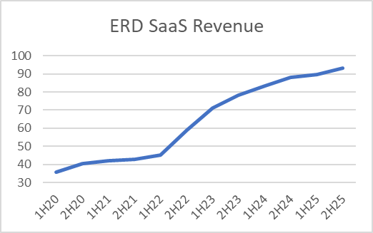 With a full-service enterprise fleet software platform, ERD generates 95% of its revenue from software as a service subscriptions which has steadily grown over time (benefiting from a large acquisition in FY22):