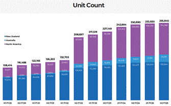 Specifically, over the coming 18 months, they are looking to grow NZ units to 100,000 (~14% growth), US units to 50,000 (41% growth) and Australian units to 10,000 units (247% growth, off a small base).
