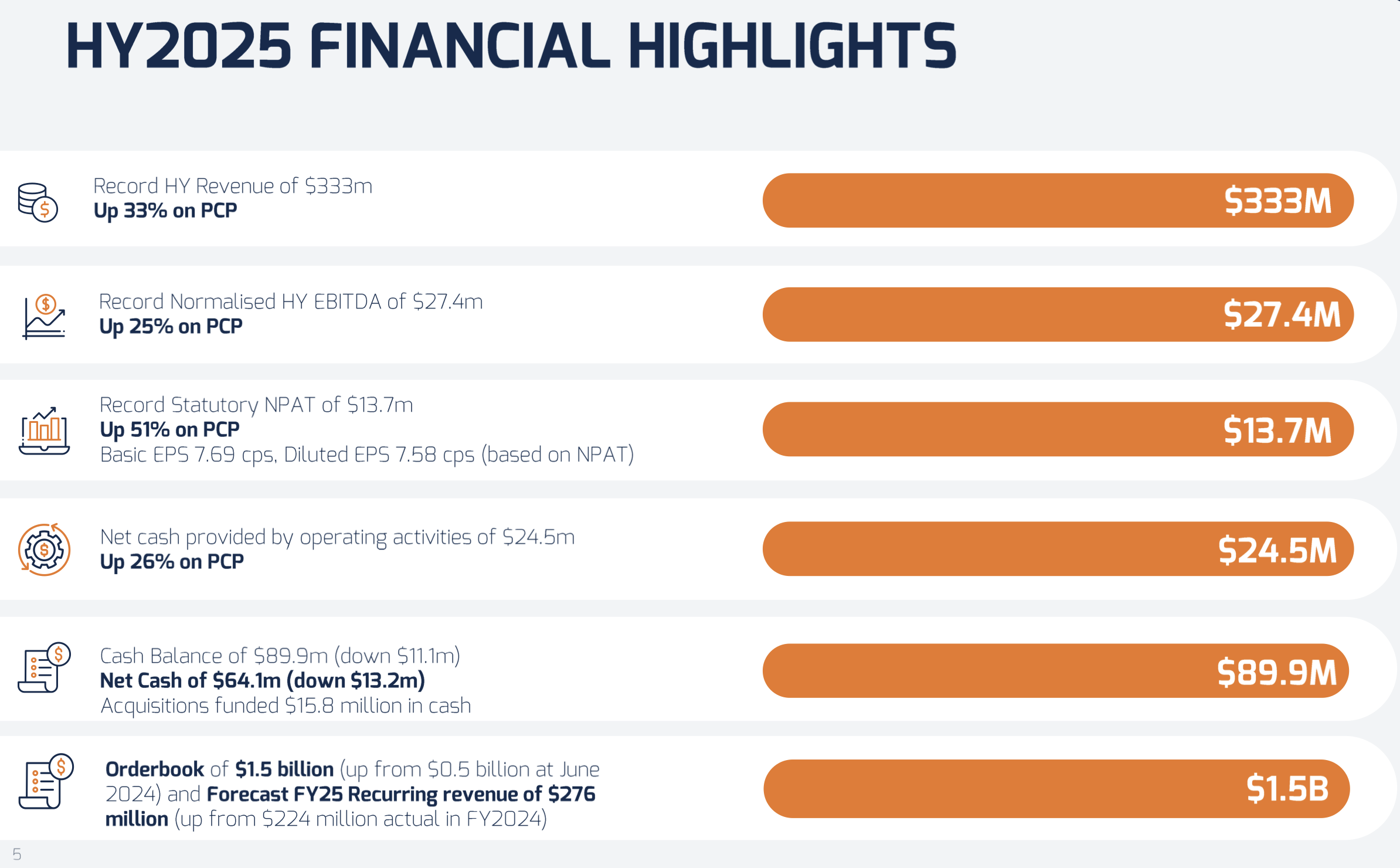 In summary, it was another great half with headline numbers all impressively up (with exception of their debt - due to an acquisition)