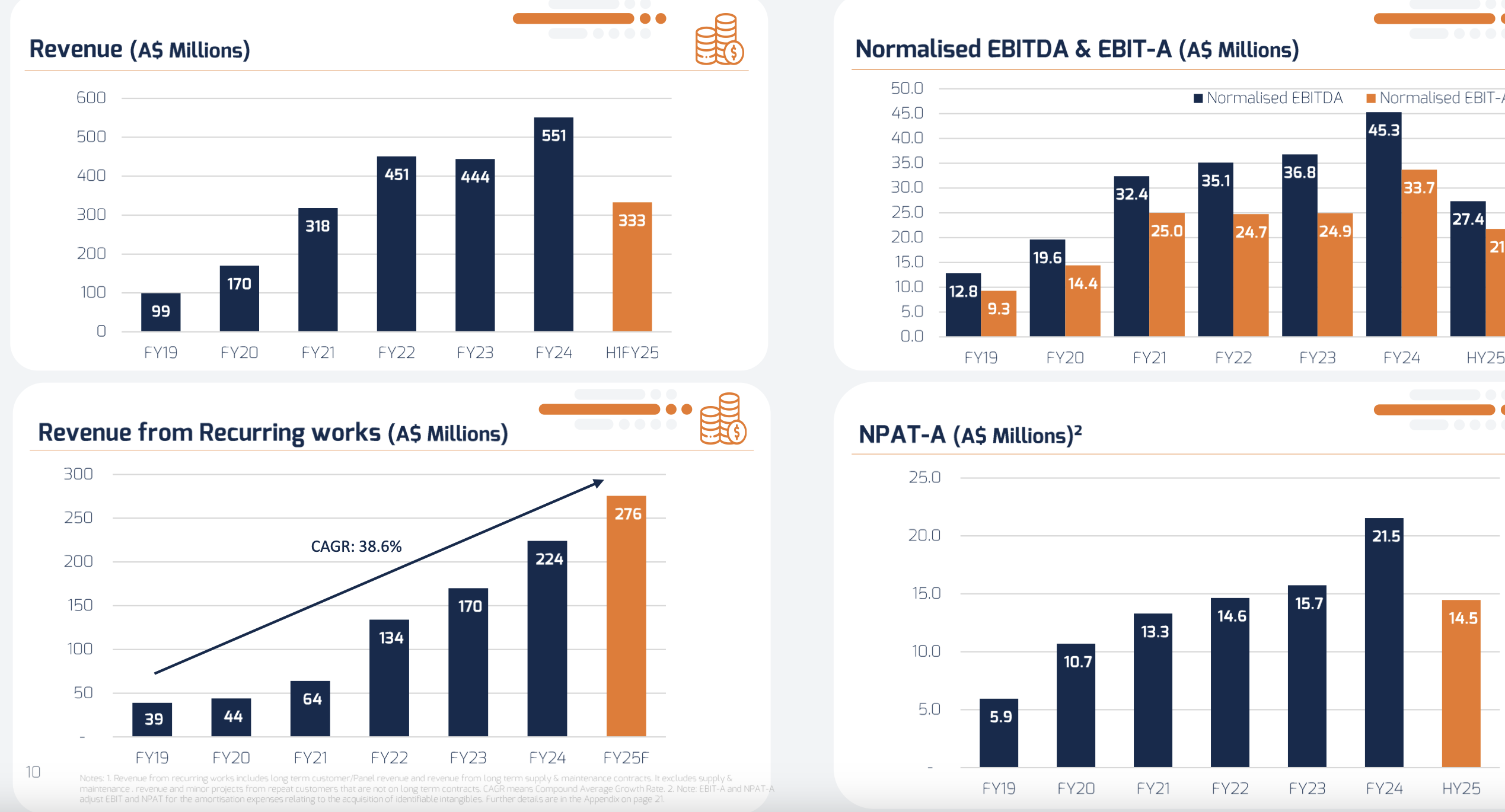 They have made a number of purchases over the last few years and have been successful at bidding for a lot of contracts. Consequently revenue has increased significantly, but EBIT and NPAT, not so much. In many ways this is to be expected when bedding down acquisitions, dealing with both pandemic induced labour market disruptions, supply chain disruptions and an inflationary environment - so perhaps I am being unrealistic.