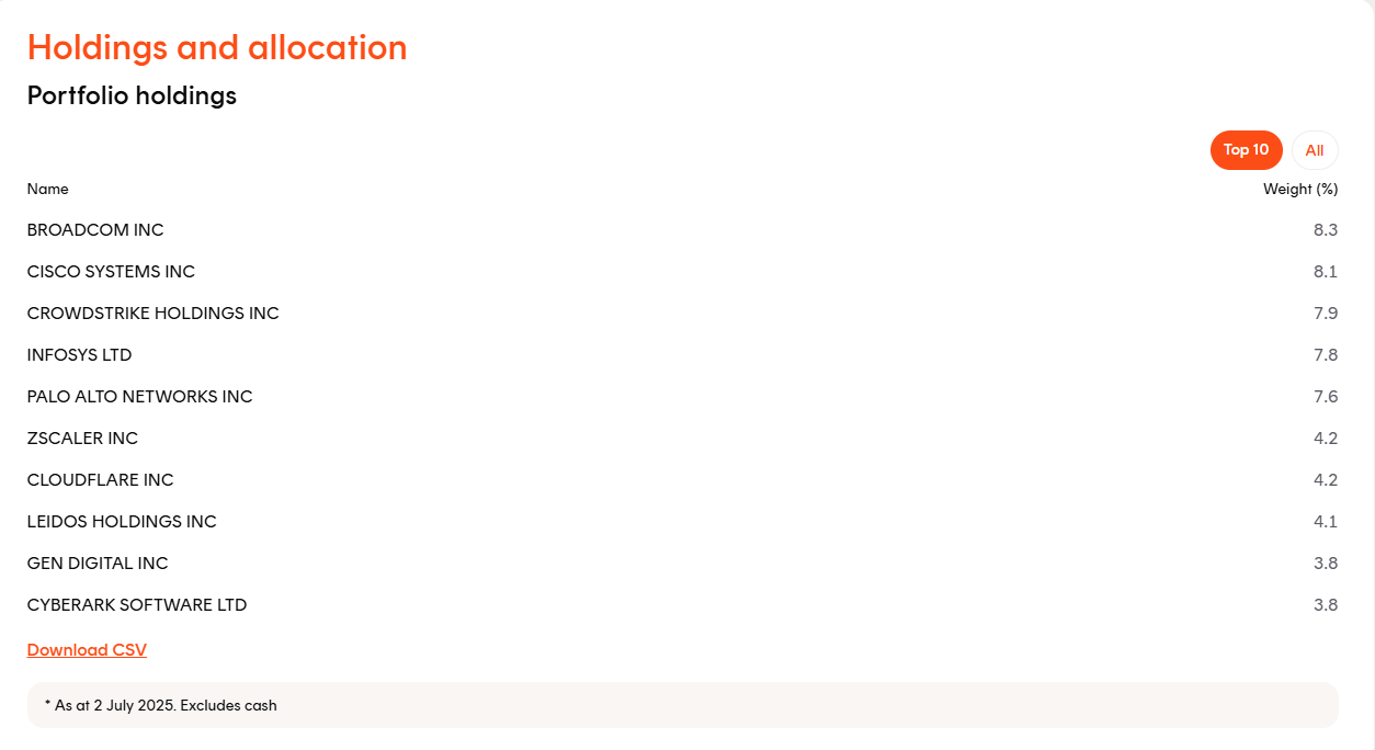 Most of you probably know it already, but it is an ASX listed ETF that invests in cybersecurity companies, predominantly listed in the USA (~85%)