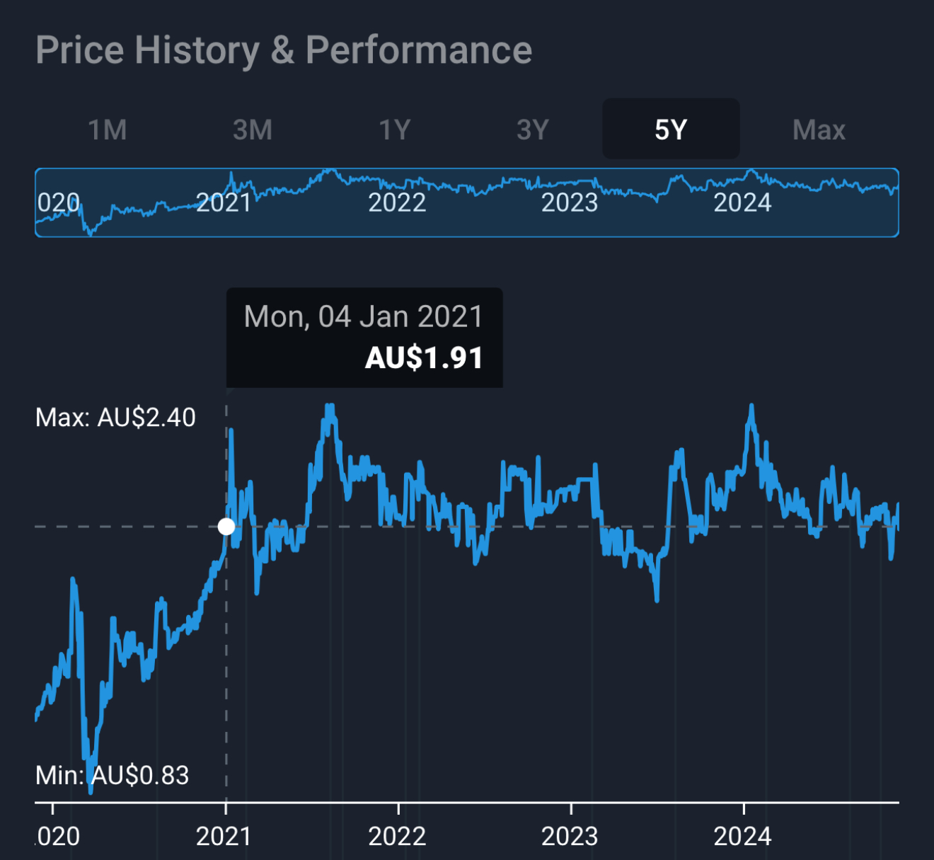 Theres no doubt this business has performed very well, yet here I am scratching my head and wondering why it trades on a PE multiple of 13.6 x FY2024 earnings per share (14 cps) and the share price hasn’t moved in four years!