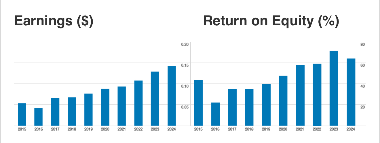 Assuming HiTech’s earnings can be sustained in the second half, FY2025 earnings could be approx. $6.8 million, or 16 cps, up 14% on FY2024. At the current share price of $1.60, that’s a very undemanding 10 times PE. I think that’s cheap for a business that has demonstrated double digit earnings growth for a decade, 10% net profit margins, and over 60% ROE currently.