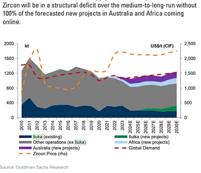 They believe that the zircon market is one of the best structural supply-side stories in commodities currently due to decline in the current industry and lack of new investment in new mine supply and believes the company to be a major beneficiary given its world-leading market share of 30% and forecasts the company's EBITDA to double by 2028.