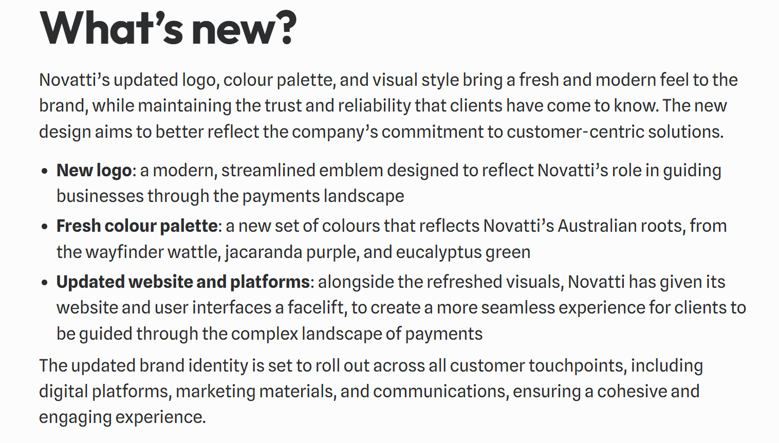 Novatti have been pretty light on details with their ambitions with Reckon with vague general statements like 'continuing discussions on servicing the needs of Reckon customers'. Reckon have done more than Novatti to provide a level of comfort that there is something of substance in the works in their Investor Roadshow Presentation. It may not be something that provides any significant contributions to revenue in the near term, however it does timestamp a target window for the launch of Novatti payments within the Reckon platform.