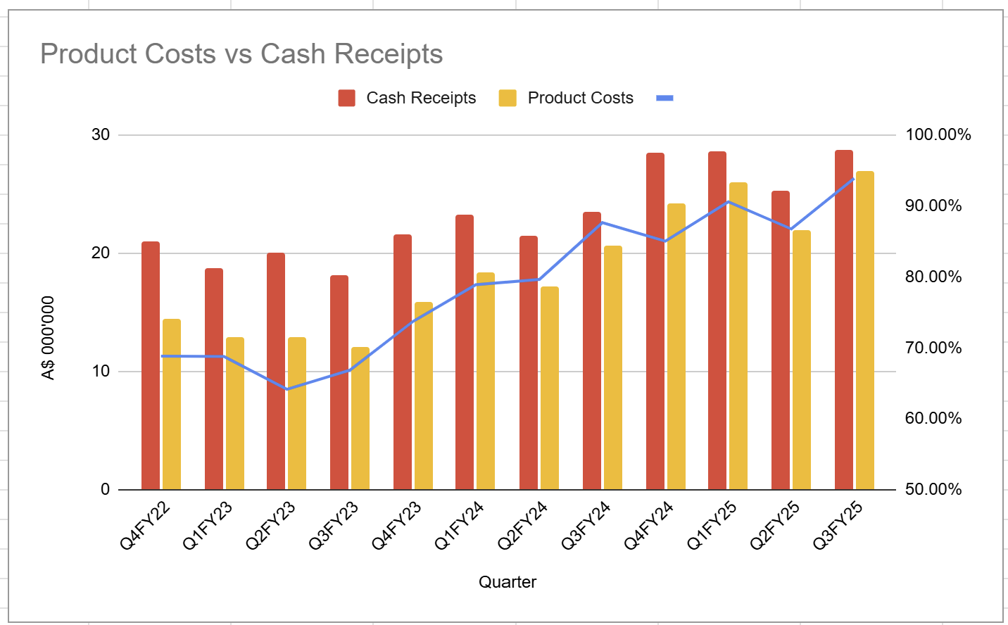 If they can get this down closer to the $2m mark for the upcoming Q3 update it will indicate that they should be able to nurse cash balances along until the cash flow positive target date.