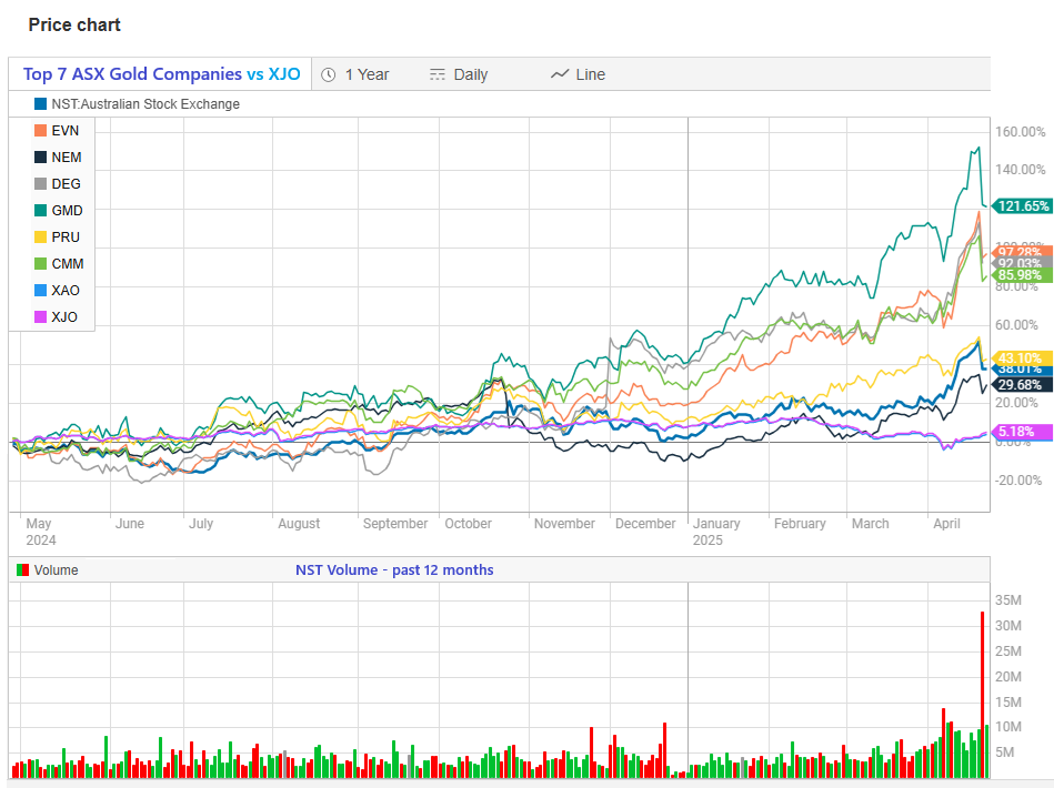 It's is a good day on the Aussie market for the Aussie Gold Sector, with most goldies in the green. In fact there are around 8 companies that are up even more than NST are:
