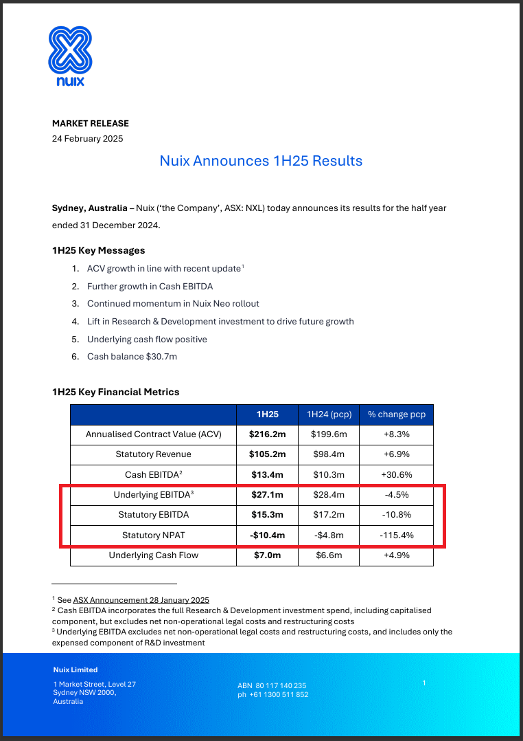 Source: Page 1 of NXL-1H25-Results.PDF