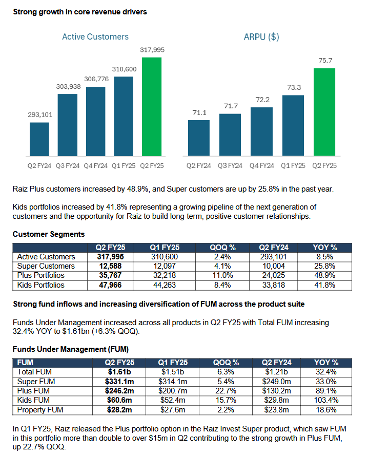 * Active Customers 2 up 8.5% YOY to 317,995: Active Customers grew further to 322,219 at 25January 2025.