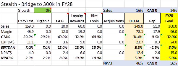 For $22m Stealth are purchasing Australia's largest privately owned national buying group for the hardware and industrial sector. And are confident that it's a step up not only in 2028 revenue but also with better NPAT margin.