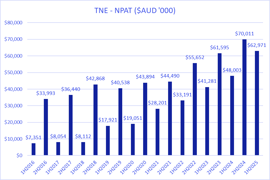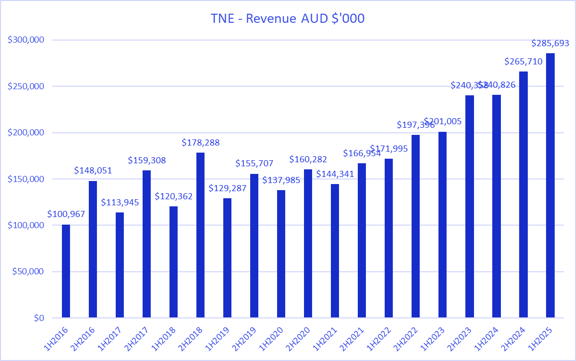 I agree with Rudi that TNE is one of the best quality companies available to invest in on the ASX, and has been for a number of years. If you are after good growth year after year and a company that sets ambitious targets and then hits those targets, then TNE fits the bill perfectly.