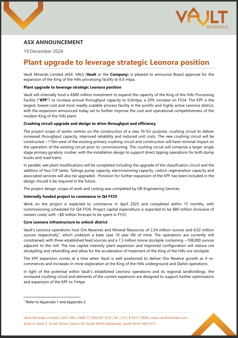 19-Dec-2024: Vault-(VAU)-Annoucement-Plant-upgrade-to-leverage-strategic-Leonora-position.PDF