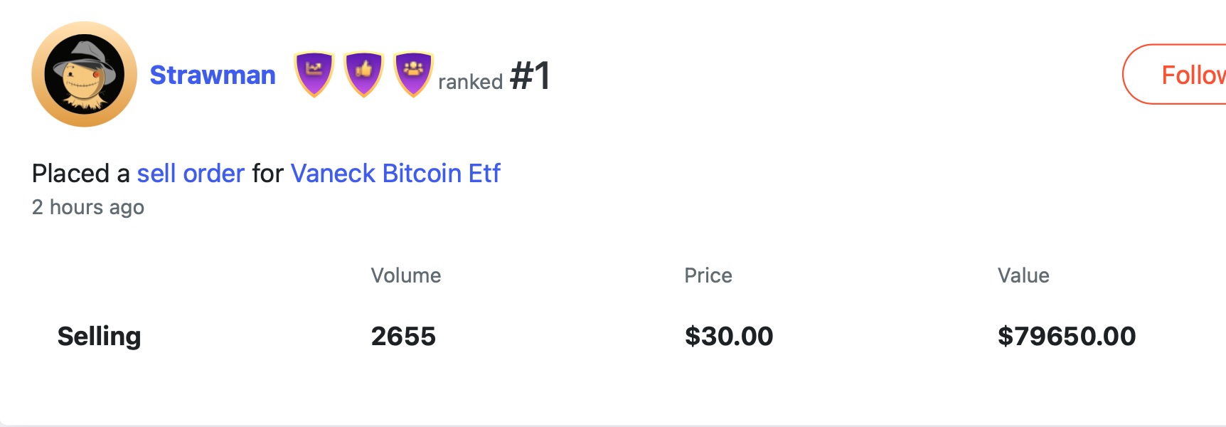 I am invested in the Bitcoin ETF (ticker code) EBTC. However on Strawman I have noticed the majority of people (if invested in a Bitcoin ETF) are invested in VBTC.